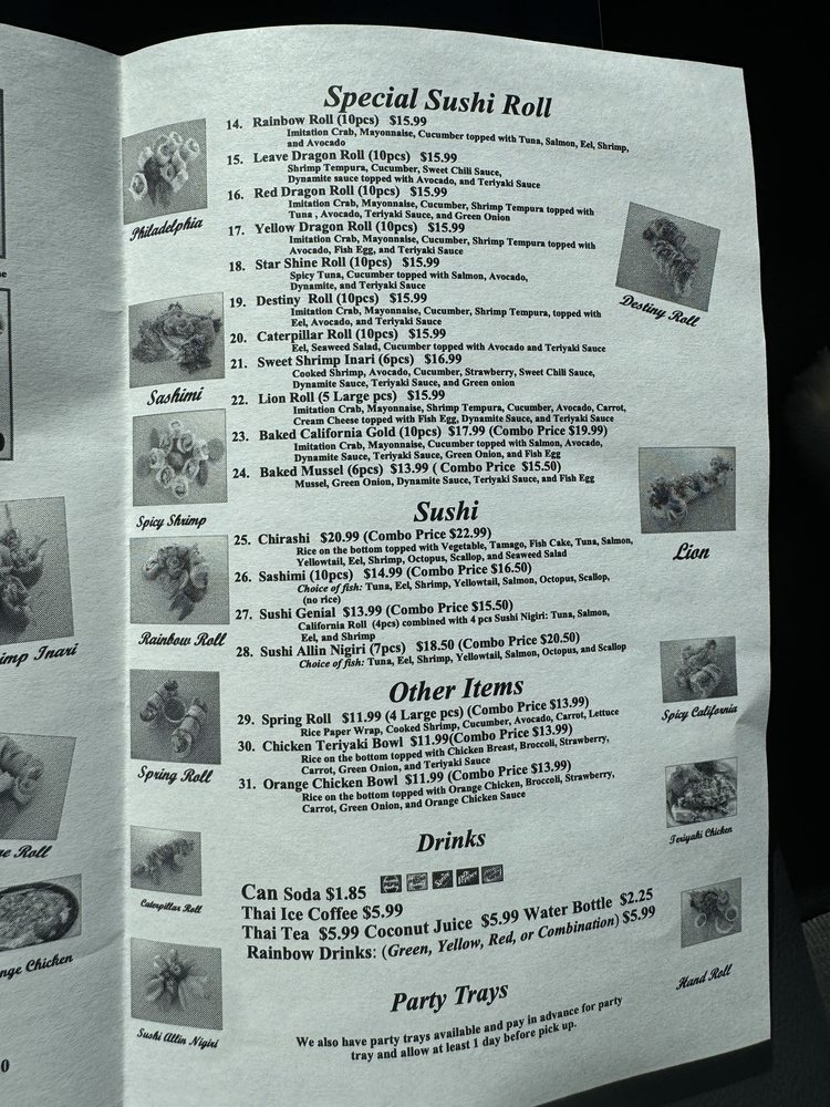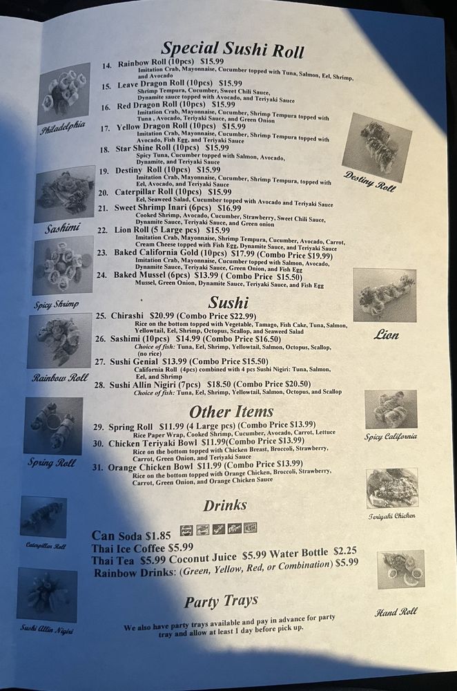 At Fleurichi Express Sushi, located at 1936 Clovis Ave, Clovis, CA, sushi lovers can indulge in an impressive array of sushi rolls crafted with fresh ingredients and bursting with flavor. The menu features regular favorites like the Spicy Salmon Roll and Philadelphia Roll, each offering unique combinations of fish, avocado, and sauces. For those seeking something special, the Rainbow Roll, topped with a variety of seafood, tantalizes with every bite. Exciting special rolls, such as the Lion Roll and Leave Dragon Roll, showcase inventive takes on traditional sushi.